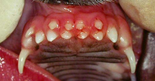 In both species, the developing adult teeth erupt in predictable locations relative to the primary teeth. For example, adult incisors erupt lingual or palatal to the primary incisors.