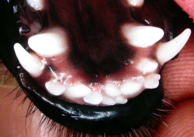Note that the following images are not normal and are undesirable! All of these persistent primary teeth should be removed ASAP.